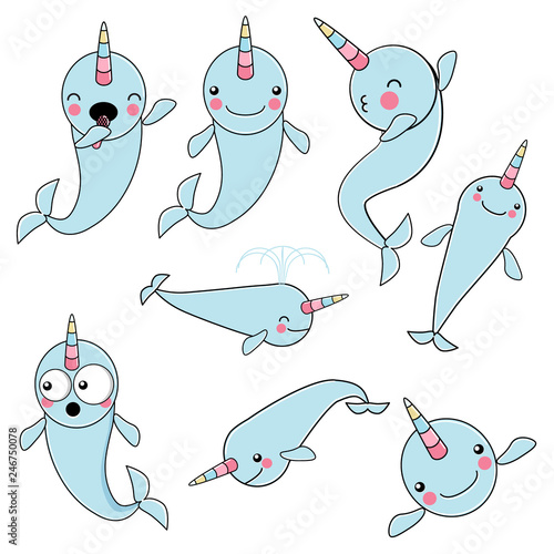 Set Cute Baby Narwhal Vector Photo Free Trial Bigstock