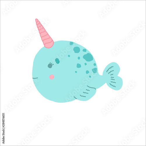 Cute Baby Narwhal Flat Illustration Isolated Stock