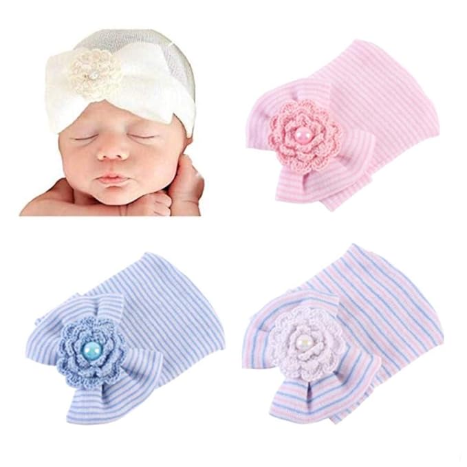 Xugq66 5pcs Newborn Baby Girl Nursery Beanie Hospital Hat With Bow