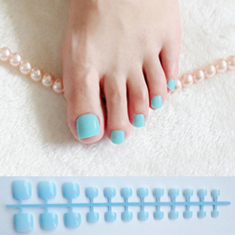 Light Blue Square Press On Nails Feet Short Artificial Fake Toe Nails Manicure Glossy Acrylic Nail False For Girls