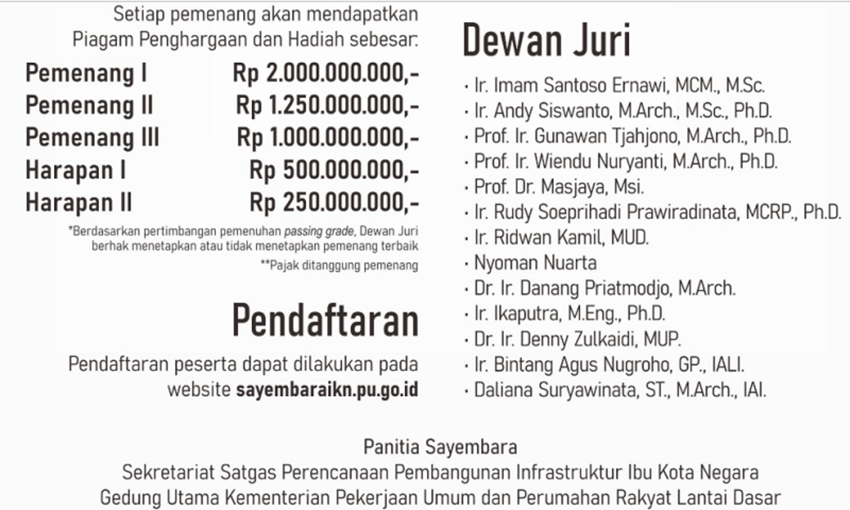 Sayembara Desain Kawasan Ibukota Negara Total Hadiah 5