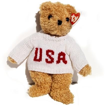Ty Baby Curly Bear In Patriotic Usa Sweater