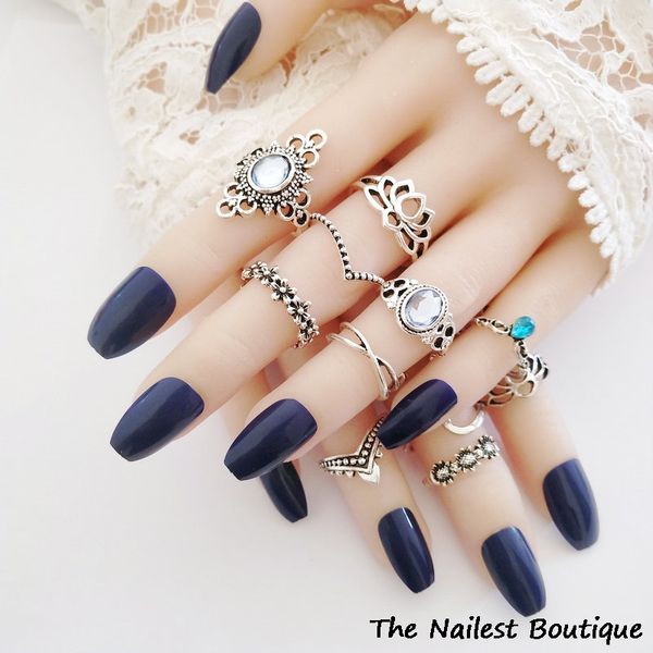 Cobalt Blue Coffin Fake Nails Dazzling Artificial Short Press On Nails Stiletto Acrylic False With Designs Fake Toenails Gel Nail Extensions From