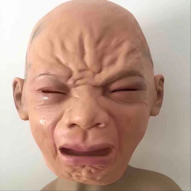 Details About Halloween Baby Cry Full Head Latex Mask Party Funny Sad Rubber Masquerade Mask