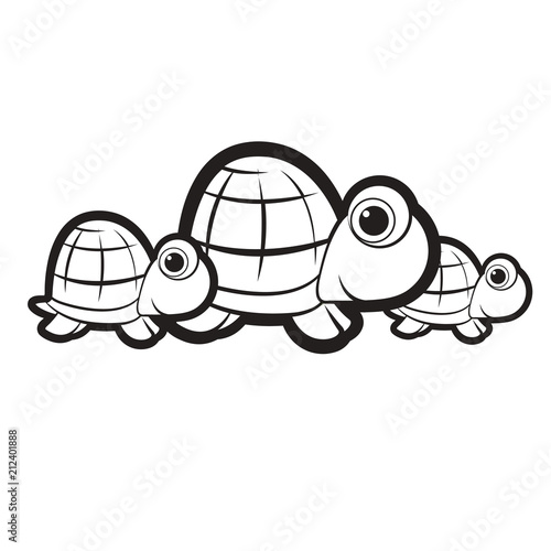 Black Outline Isolated Cute Baby Tortoise Vector Drawing